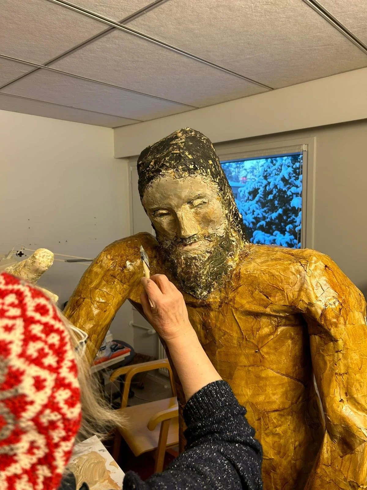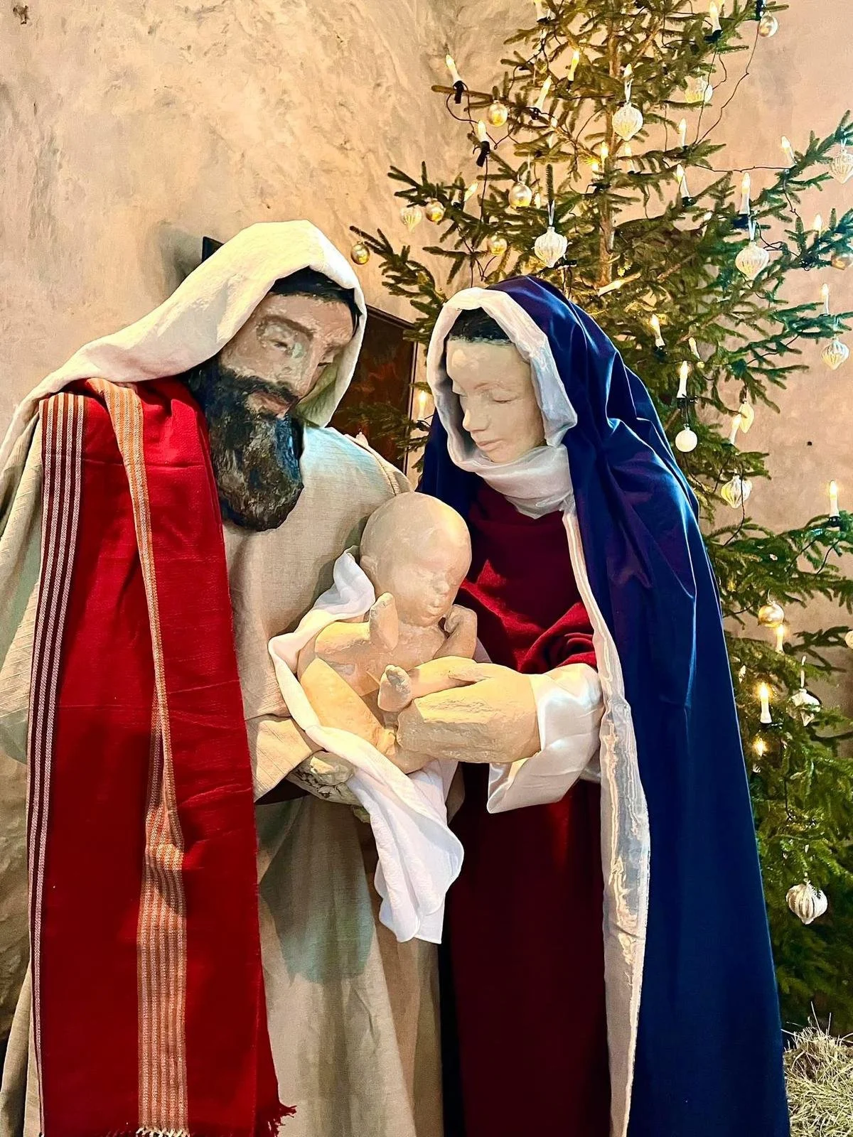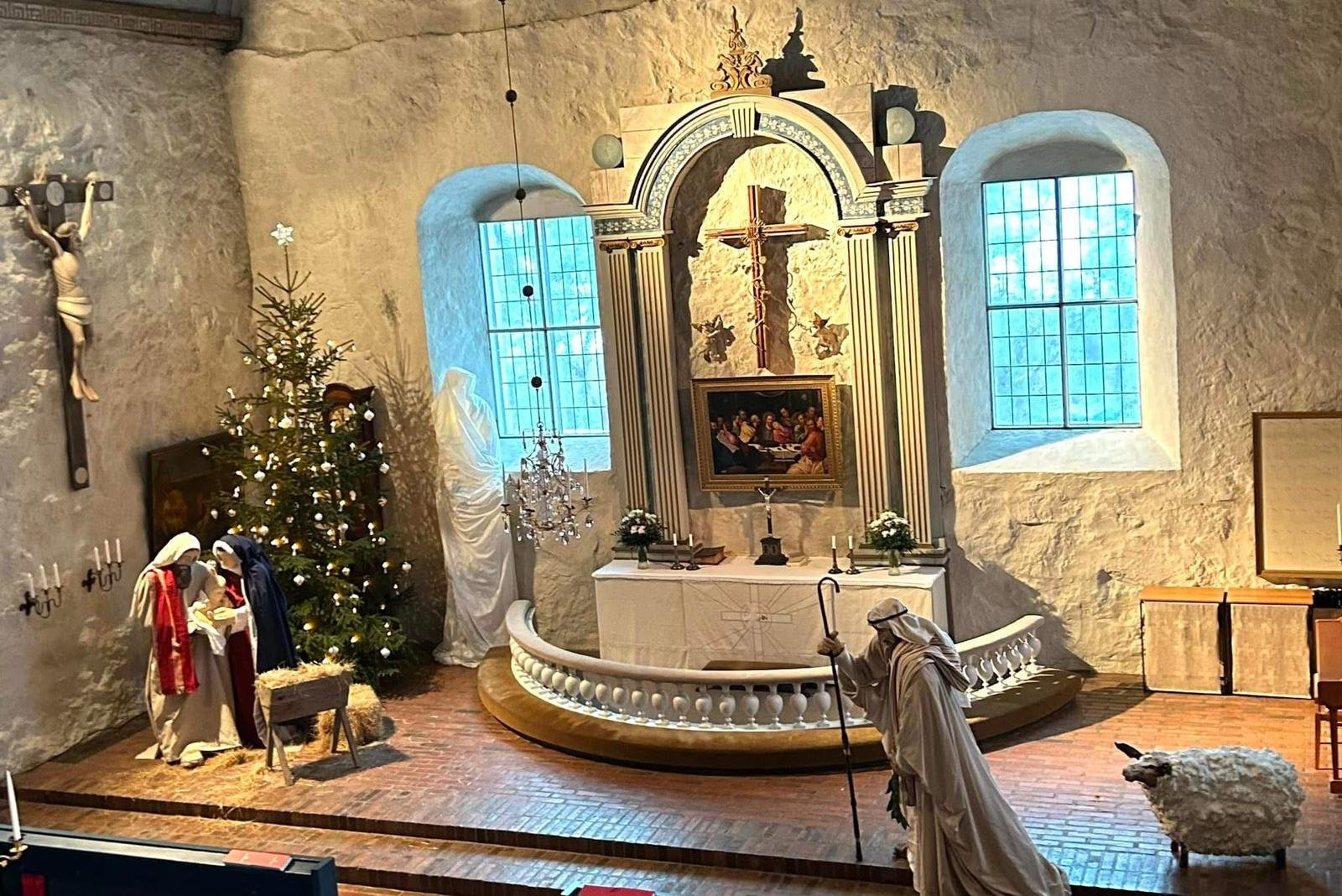 Koe joulu Kakskerran kirkon tapahtumissa Inton yhteisötaideryhmän jouluinstallaation äärellä